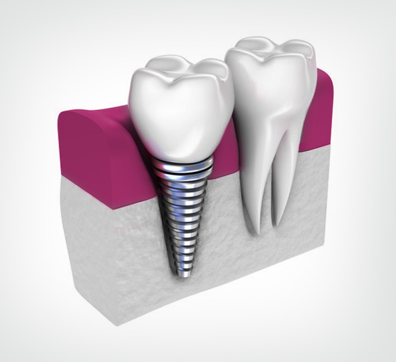 A dental implant holds teeth in place in an edentulous space or holds a complete prosthetic on a series of implants. The implant is a titanium screw placed in the jaw bone. Titanium has the property of fusing with the bone when it heals. This process is called osteointegration. The implants allow your dentist to make very stable crowns or prosthetics. Implants have been around for more than 25 years. It is common to see patients whose implants are still functional after all this time. Obviously, implants require meticulous hygiene and follow-up by your dental team.